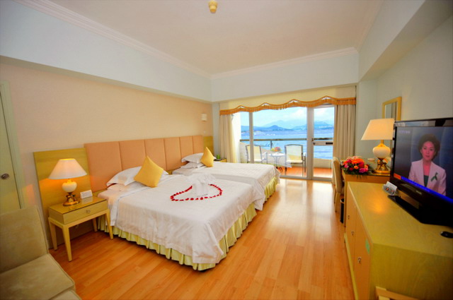 豪華海景雙床房 面積:39-45平方米 樓層:2-8層 海景:180度海景 陽臺:觀海陽臺 雙標(biāo):1.3*2米 浴缸:大部分房間有 寬帶:免費