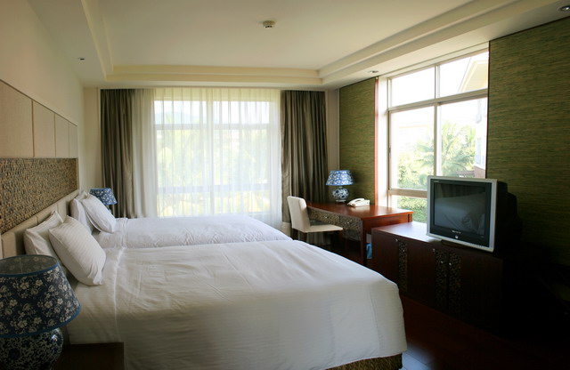 聯排別墅房:分布于1-3層,無陽臺,有浴缸,房間面積23平方米,大床(2*2米),雙床(1.2*2米),免費寬帶