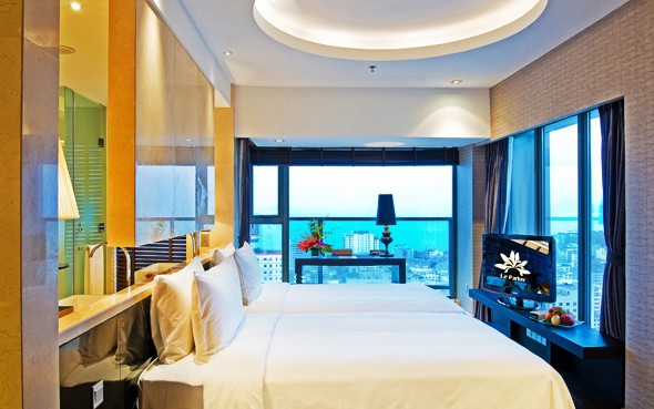 三亞黎客國際酒店座落于三亞市繁華商業(yè)圈,坐擁河西路、文明路和新風(fēng)路,毗鄰享譽(yù)島內(nèi)外的春園海鮮廣場及200畝生態(tài)城市公園,明珠廣場、三亞步行街等知名購物中心以及三亞汽車總站近在咫尺,距三亞鳳凰國際機(jī)場僅30分鐘車程,步行5分鐘即可親臨享有聲譽(yù)的“椰夢長廊”---三亞灣,踩白沙細(xì)水,聽椰風(fēng)海韻,看綠影婆裟,盡享三亞的天藍(lán)海碧。來自中法港臺新加坡的國際設(shè)計團(tuán)隊,非凡手筆彰顯時尚溫馨兼具的獨(dú)特風(fēng)格。三亞黎客國際酒店獨(dú)高99米,總27層,擁有各類豪華客房。擁享都市內(nèi)唯一超5000㎡的巴厘島風(fēng)情叢林中庭和獨(dú)具特色的空中泳池。酒店配套措施完善,我是一只魚西餐廳、融廷中餐廳、西雅圖海鮮餐廳、小林吧、庭園酒廊等應(yīng)有盡有,還有具國際水準(zhǔn)的水療館,商務(wù)健身中心、會議室及臺灣名品店。這是一座優(yōu)雅奢華的城,更是一個精致溫馨的家,為您提供集養(yǎng)生、休閑、商務(wù)、度假為一體的最佳生活體驗(yàn)。